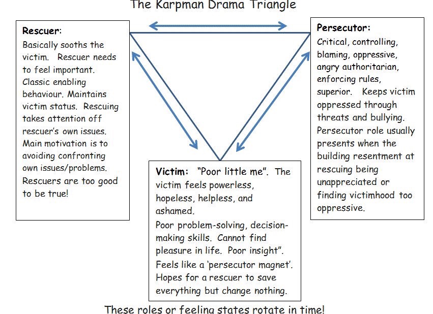 Some executives have bullying tendencies themselves and promote a culture of bullying to enable them to continue the toxic behaviour. They use an elaborate system to select, reward and promote favourite employees while denigrating and punishing the chosen victims and protecting the abusers in the company. They deliberately pit employees and teams against one another to prevent detection and this paralyzes any attempts by the organisation to deal with the problem. To better understand this dynamic, one needs to use a tool developed by Stephen Karpman called the Drama Triangle.